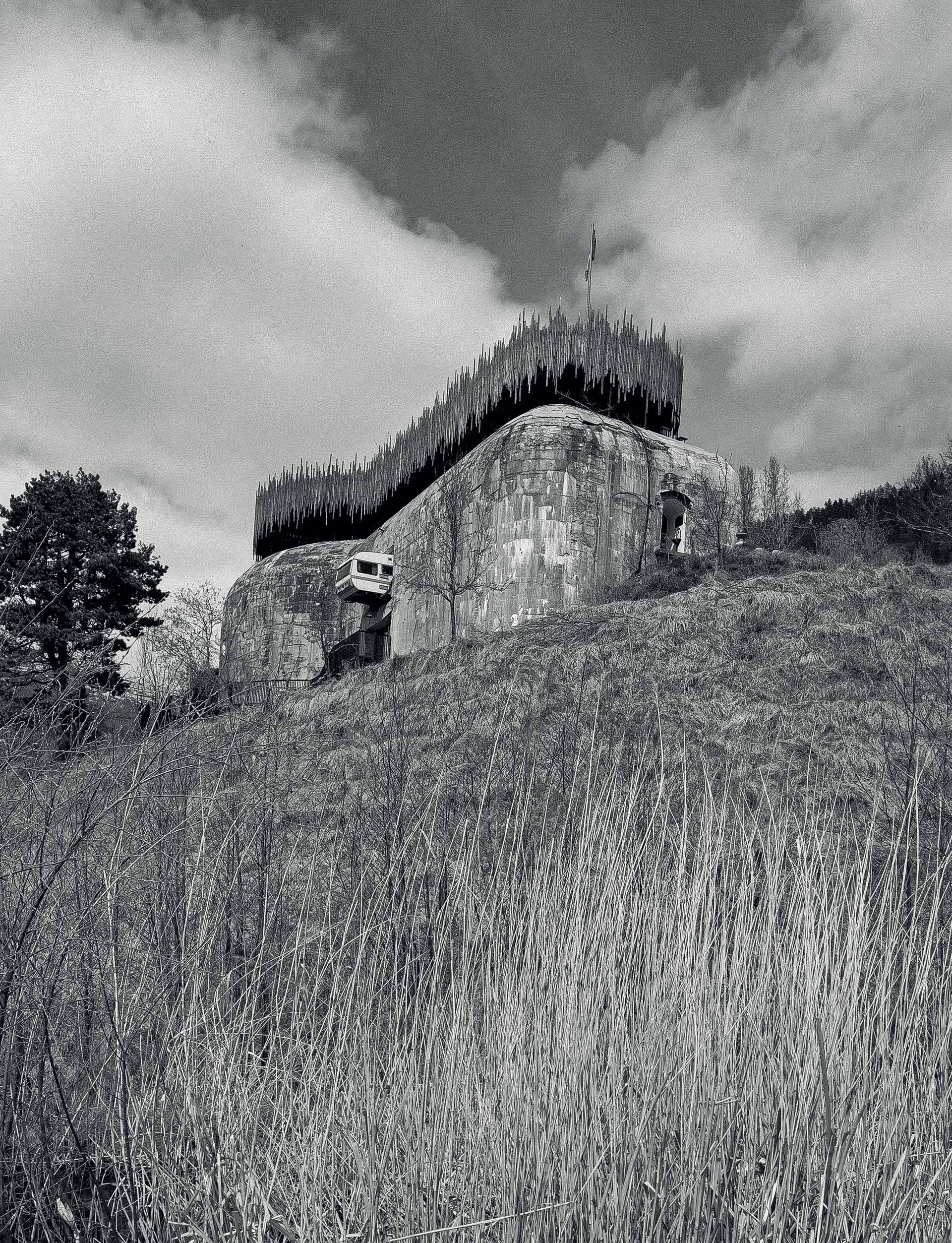 Der Bunker 23 in Tartsch, Südtirol, gebaut zwischen 1938 und 1942 von Benito Mussolini. Othmar Prenner und seine Freunde haben ihn ab 2015 unter dem Titel give peace a chance zu einem Ort der Kunst umgestaltet. Besondere Attraktion, der eingebaute Wohnwagen. 2025 findet hier die Ausstellung +/ – Folk statt. Foto Othmar Prenner.