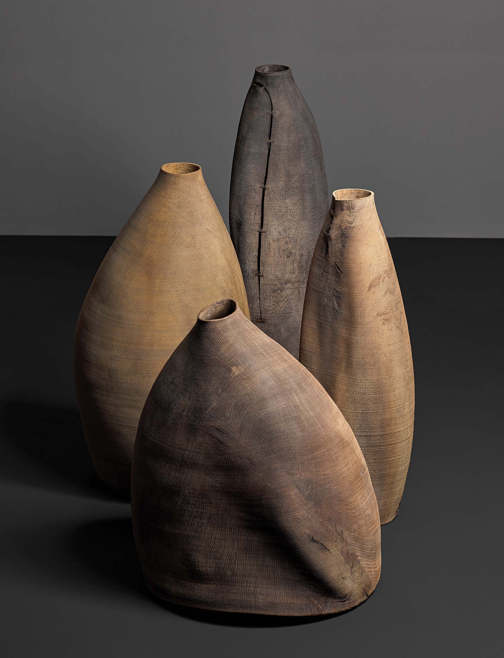 Das „Lebensbaumprojekt“ von Ernst Gamperl umfasst rund 100 Holzobjekte – skulpturale Gefäße in unterschiedlichen Formen und Größen – die aus einer 230 Jahre alten Eiche gestaltet wurden. Die Werkserie ist das Ergebnis einer jahrelangen Auseinandersetzung mit Material und Form. Bereits zu Beginn seiner Laufbahn entwickelte Ernst Gamperl eine ganz eigene künstlerische Sprache – jenseits gängiger Regeln und Konventionen. Die historische Technik des Drechselns hat er radikal erneuert und in die Gegenwart geführt. Vom 22. November 2025 bis 26. April 2026 präsentiert das Museum für Kunst und Gewerbe Hamburg (MK&G) die Arbeiten des Holzgestalters in der Ausstellungsreihe „Contemporary Craft“, in der zeitgenössische Positionen im Kunsthandwerk vorgestellt werden.