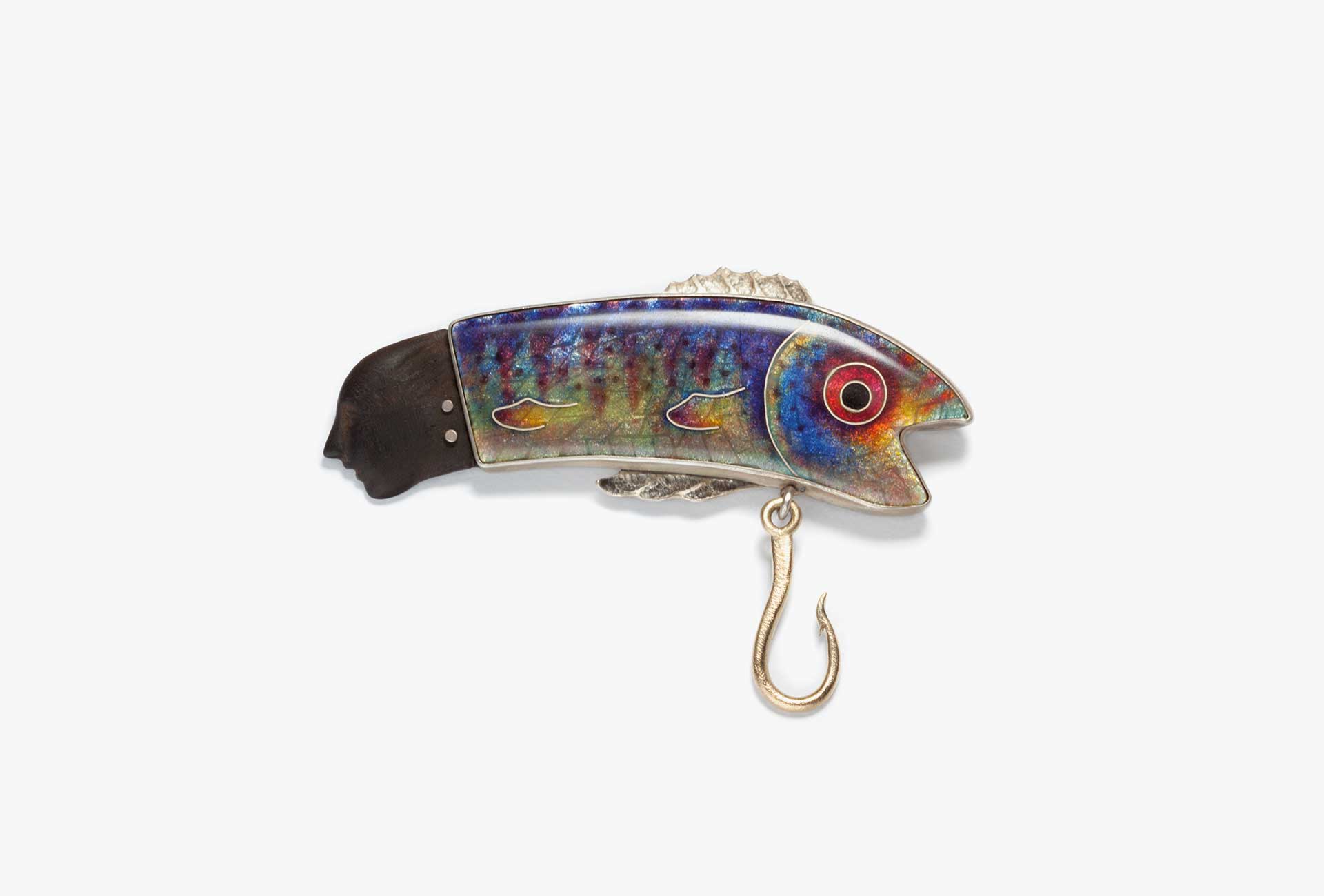 Schmuckkunst überschreitet Grenzen und verbindet Kontinente. Die Sammlung von Helen Drutt beweist es. Zu sehen ab 4. März 2026 in der Münchner Galerie Handwerk. Elizabeth Garrison, Brosche Nachtangeln #1, 1986. Ebenholz, Emaille, Silber, 9,6 x 7 x 0,4 cm. Foto Eva Jünger.