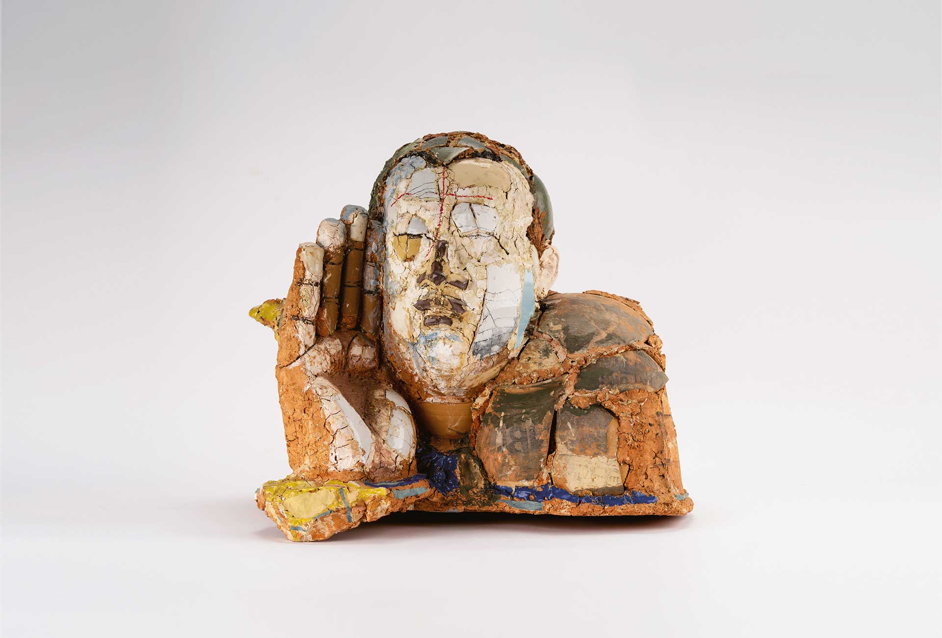 Gertraud Möhwald, Büste einer Frau, die die Hand an den Kopf hält, 1992, H 45,5 cm, Museum für angewandte Kunst, Gera. Photo: Marcus Rebhan, ThULB Jena.